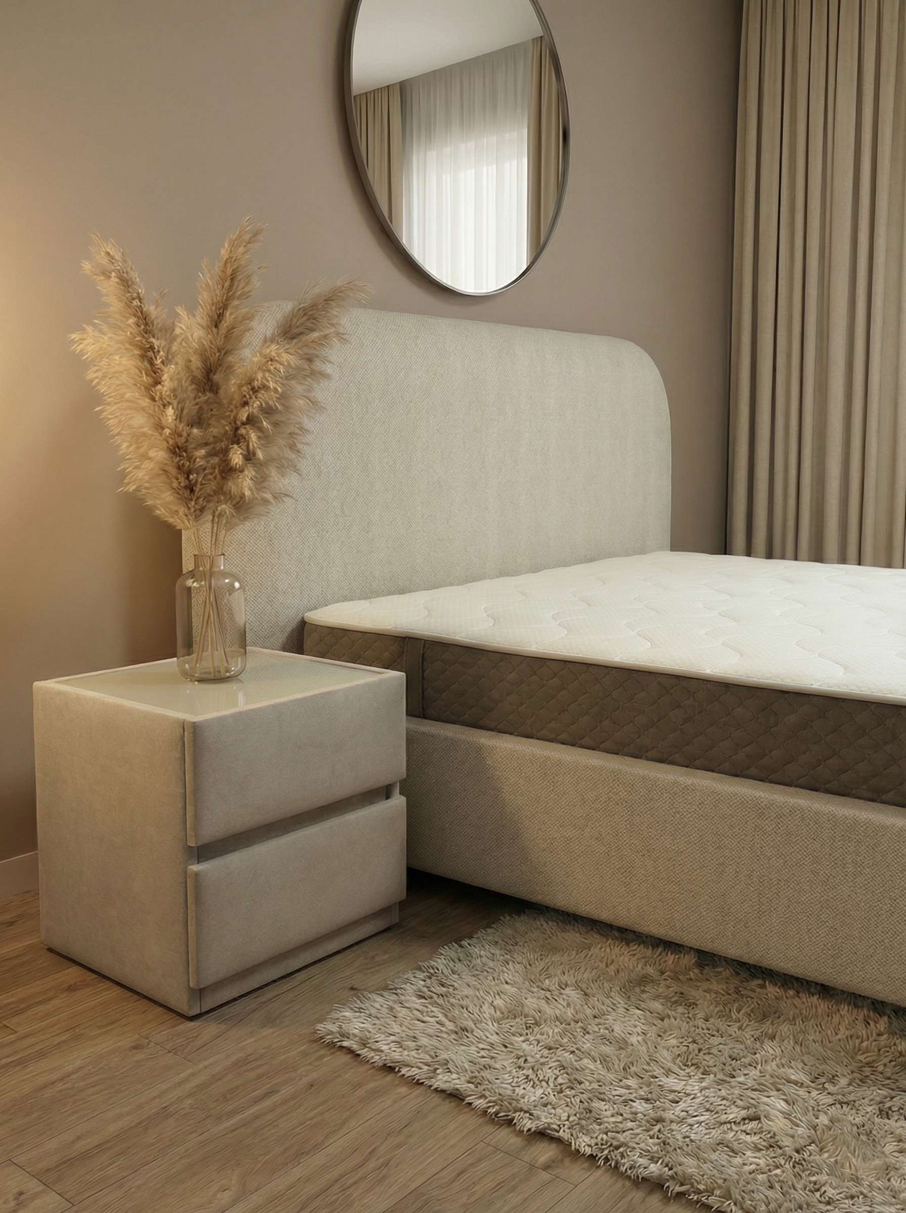 Кровать Мия 140*190 см с изголовьем в трендовом минималистичном дизайн. Эта кровать создана для тех, кто ценит комфорт, мягкие формы и современный стиль. Её главное украшение — объёмное изголовье с плавными закруглёнными линиями, создающее атмосферу уюта и спокойствия в спальне.